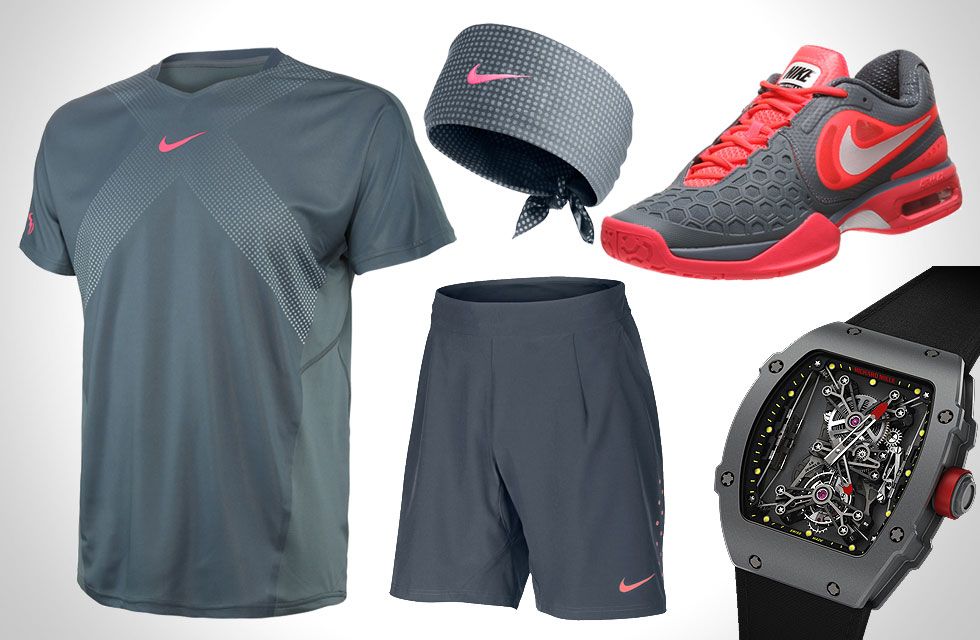 1. Watch: Richard Mille RM 27-01 ($690,000) 2. Shirt: Nike Men’s Autumn Premier Rafa Crew Armory Blue ($75)