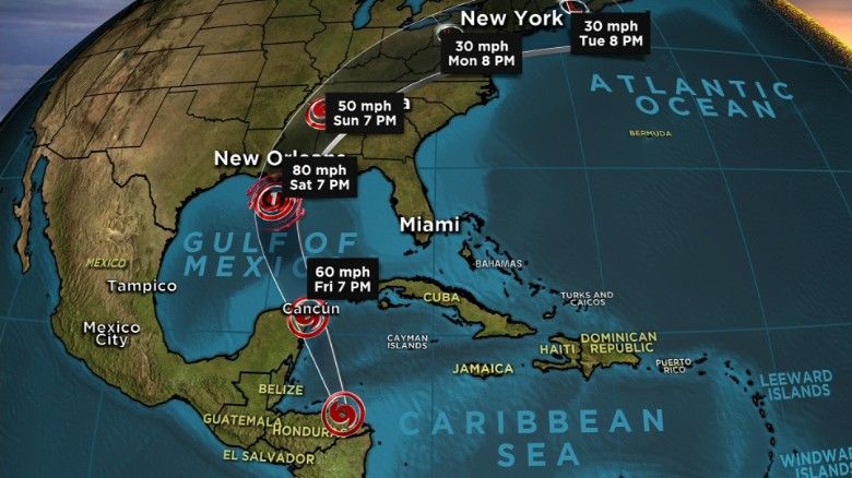 (CNN)Tropical Storm Nate moved across northeastern Nicaragua and into eastern Honduras, as early forecast models showed it taking aim this weekend at the northern US Gulf Coast, likely as a minor hurricane, according to the National Hurricane Center.